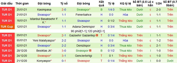 + Thống kê 10 trận gần nhất của Sivasspor