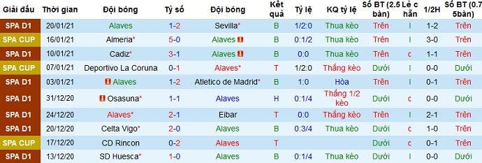 + Thống kê 10 trận gần nhất của Alavés
