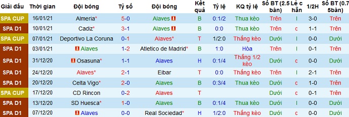 + Thống kê 10 trận gần nhất của Alavés