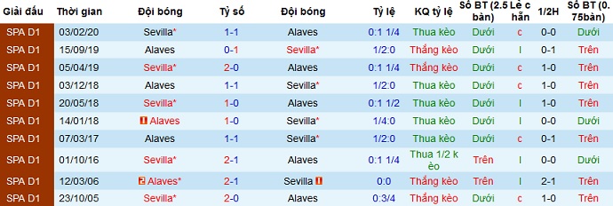 + Soi tỷ lệ kèo châu Á: So về đẳng cấp rõ ràng Sevilla hơn hẳn đội chủ nhà nên không có gì khó hiểu khi họ là đội cửa trên với kèo chấp là -0,75. Thế nhưng Alaves là đội bóng biết chắt chiu từng điểm trước các đội bóng lớn. Ngay trong mùa giải trước Sevilla cũng chỉ thắng được Alaves 1 trận trong 2 lần đối đầu, với tỷ số tối thiểu 1-0.