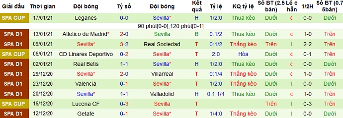 + Thống kê 10 trận gần nhất của Sevilla