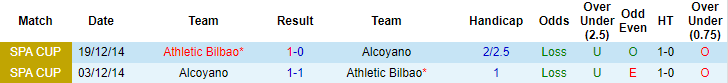 Bilbao từng chạm trán Alcoyano 2 lần tại Cúp Nhà vua Tây Ban Nha năm 2014. Trên khách, Bilbao bị Alcoyano cầm hòa với tỷ số 1-1, trận đấu sau đó trên sân nhà, đội bóng xứ Basque phải rất vất vả mới có thể giành chiến thắng với tỷ số 1-0. Lần tái đấu sắp tới, Bilbao thậm chí đang được cảnh báo về nguy cơ phải nhận thất bại.