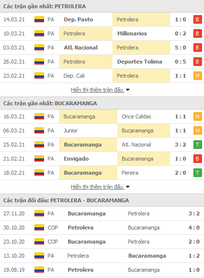 Phong độ và thống kê đối đầu gần đây Alianza Petrolera vs Atletico Bucaramanga:
