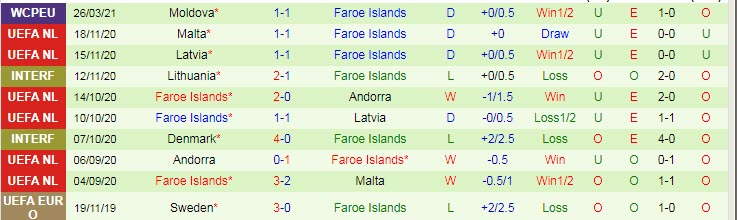 + Thống kê 10 trận gần nhất của Đảo Faroe