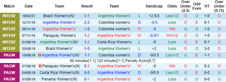 + Soi tỷ lệ kèo châu Á: 2 lần đối đầu Argentina (W) gần đây, Canada (W) toàn thua theo kèo châu Á. 5 trận liên tiếp gần đây Canada (W) không biết mùi chiến thắng nên họ càng khó hứa hẹn vượt kèo chấp -2 1/4 ở trận đấu sắp tới. Chọn: Argentina (W).