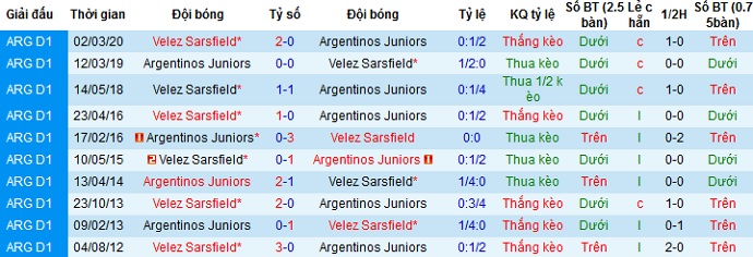 Tỷ lệ kèo Argentinos Juniors vs Vélez Sársfield