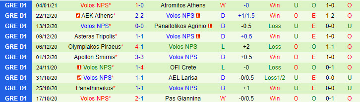 + Thống kê 10 trận gần nhất của Volos