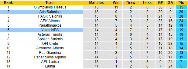 Không chỉ phong độ thua kém, Volos còn lép vế trước Aris Salonica về thành tích đối đầu. Lùi lại trận lượt đi mùa này, họ đã để thua Aris Salonica với tỷ số 0-1 ngay trên sân nhà. Như vậy, Volos đã có chuỗi 3 trận đối đầu không biết mùi chiến thắng trước Aris Salonica.