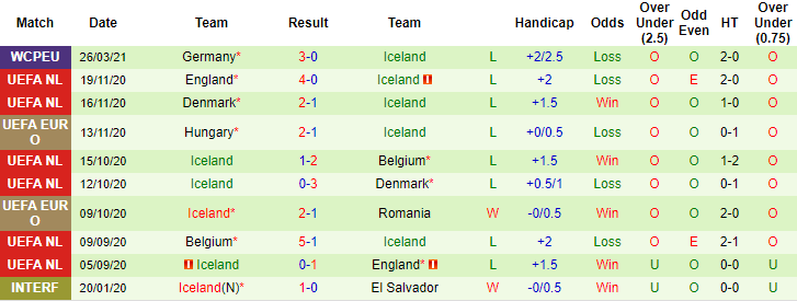 + Thống kê 10 trận gần nhất của Iceland