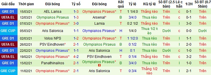 + Thống kê 10 trận gần nhất của Olympiakos