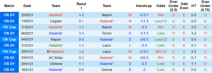 - Thống kê 10 trận gần nhất của Atalanta