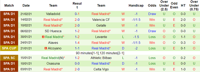 - Thống kê 10 trận gần nhất của Real Madrid