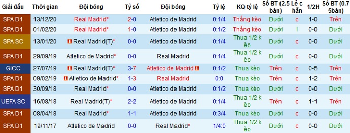 Tỷ lệ kèo Atletico Madrid vs Real Madrid