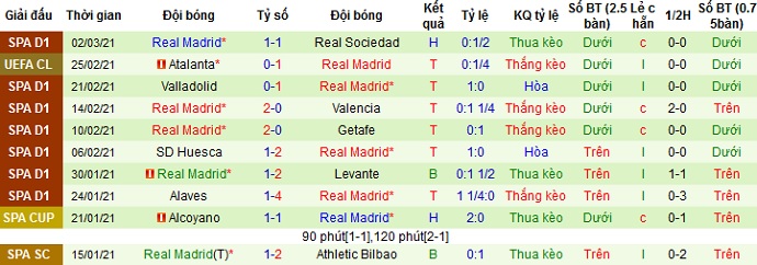 + Thống kê 10 trận gần nhất của Real Madrid
