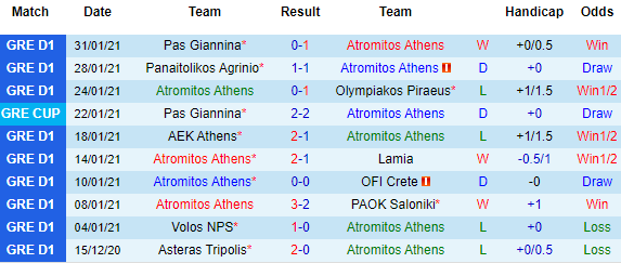 + Thống kê 10 trận gần nhất của Atromitos