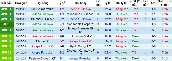 + Thống kê 10 trận gần nhất của Avispa Fukuoka