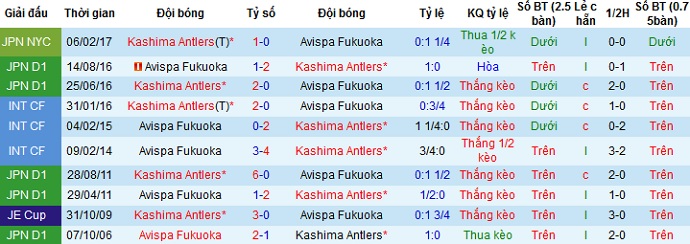 + Lịch sử đối đầu Avispa Fukuoka vs Kashima Antlers