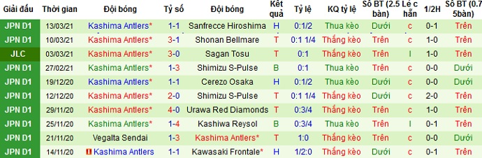 Ngoài ra trong lịch Kashima Antlers đang chiếm uu thế tuyệt đối khi giành chiến thắng trong cả 9 lần đối đầu gần nhất giữa hai đội. Với phong độ sân khách cũng vẫn khá tốt của Kashima Antlers, có lẽ chọn cửa trên ở trận đấu này vẫn có phần hợp lý.