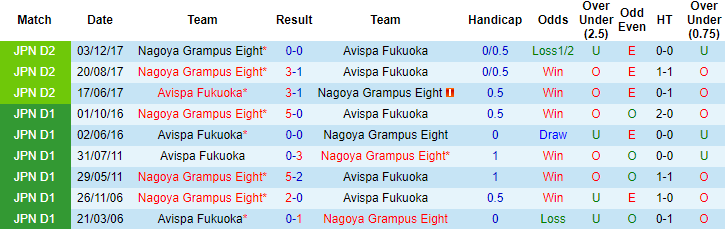 Phong độ và thống kê đối đầu Avispa Fukuoka vs Nagoya Grampus