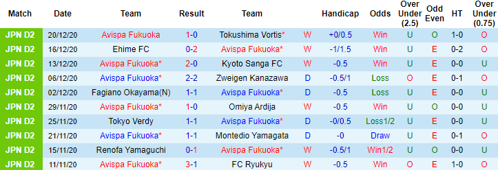 + Thống kê 10 trận gần nhất của Avispa Fukuoka