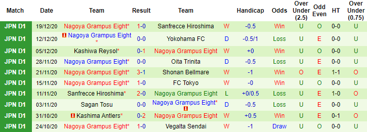 + Thống kê 10 trận gần nhất của Nagoya Grampus