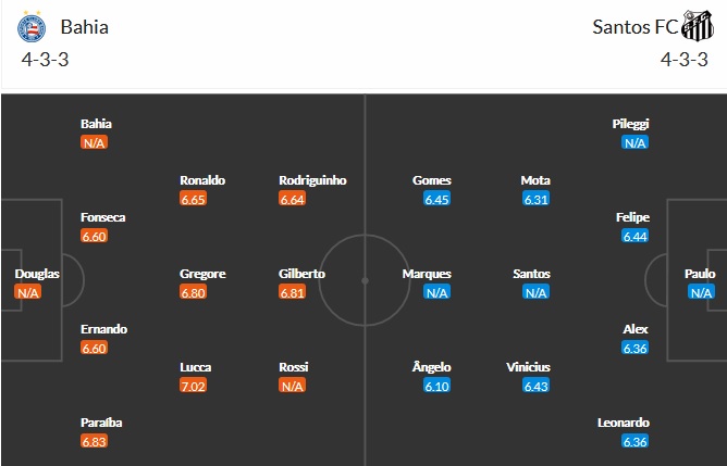 Đội hình dự kiến Bahia vs Santos