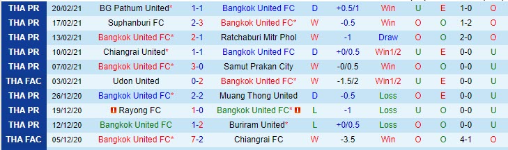 + Thống kê 10 trận gần nhất của Bangkok United