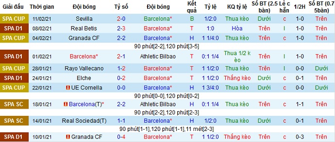 + Thống kê 10 trận gần nhất của Barcelona