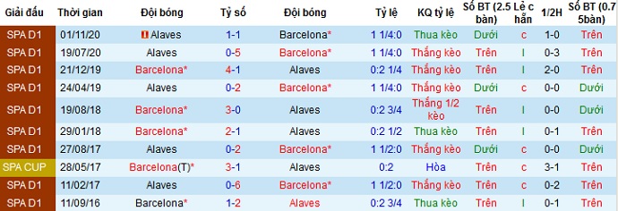 + Lịch sử đối đầu Barcelona vs Alavés