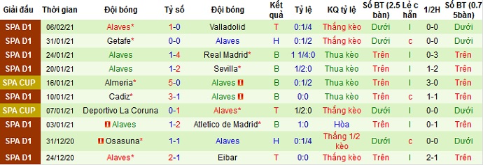 + Thống kê 10 trận gần nhất của Alavés