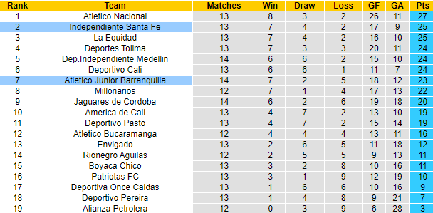 Trận đối đầu giai đoạn lượt đi, Santa Fe đánh bại Barranquilla với tỷ số đậm đà 3-1. Lần tái đấu sắp tới Santa Fe xứng đáng được đánh giá cao hơn đối thủ về mặt lý thuyết. Tuy nhiên, thực tế cho thấy Barranquilla đang là đội bóng được giới chuyên môn đánh giá cao hơn trước giờ bóng lăn.
