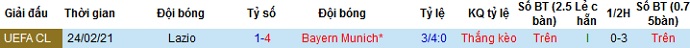 Tỷ lệ kèo Bayern Munich vs Lazio