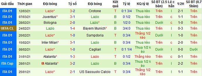 + Thống kê 10 trận gần nhất của Lazio