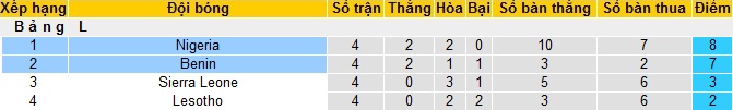 Khoảng cách của Benin với đội thứ ba của bảng Sierra Leone hiện đang là 4 điểm nên khả năng cả Benin và Nigeria sẽ cùng lọt vào vòng chung kết với tư cách là 2 đội đứng đầu của bảng đấu là rất cao.