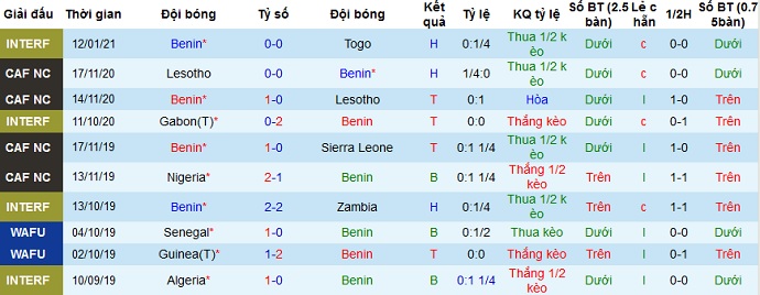 + Thống kê 10 trận gần nhất của Benin