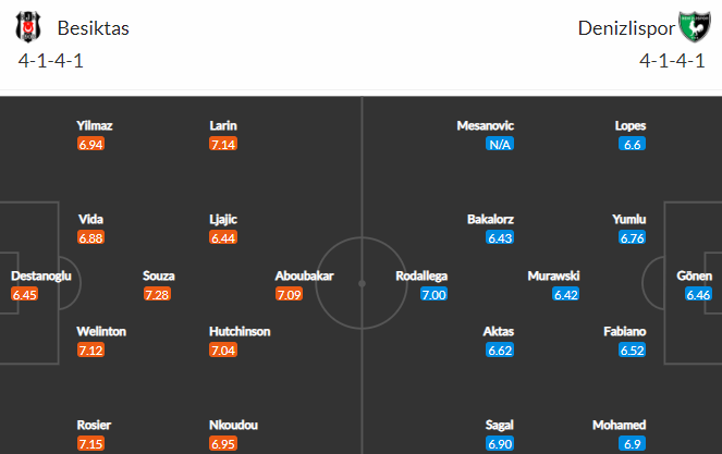 Đội hình dự kiến Besiktas vs Denizlispor