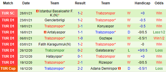 + Thống kê 10 trận gần nhất của Trabzonspor