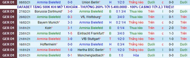 + Thống kê 10 trận gần nhất của Bielefeld