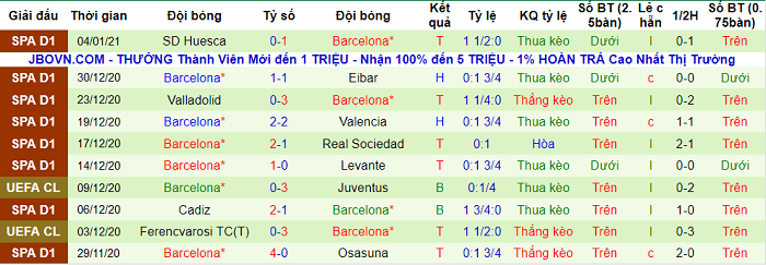Cũng vì thành tích sân khách không tốt, Barca thường làm ‘phật lòng’ giới đầu tư. Họ là một trong 6 đội thua kèo nhiều nhất của La Liga 2020/21. Cụ thể: Blaugrana thua theo tỷ lệ châu Á ở 5/7 trận sân khách kể từ khi La Liga mùa này khởi tranh.