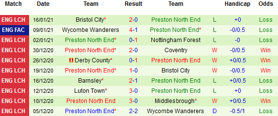 + Thống kê 10 trận gần nhất của Preston