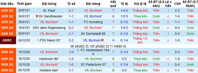 Chuỗi trận bất bại của Bochum hiện đã kéo dài lên 7 trận liên tiếp, bao gồm cả trận thắng tại cúp quốc gia. Trong số đó đội bóng chỉ để hòa 1 trận duy nhất, thắng cả 6 trận còn lại. Trên sân nhà Bochum cũng đang toàn thắng trong cả 5 trận gần nhất.