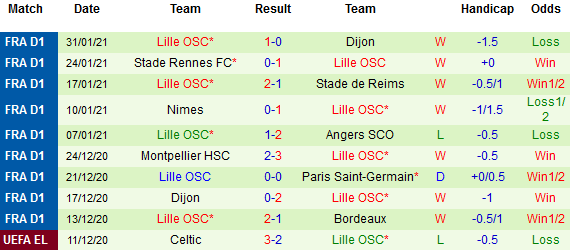 + Thống kê 10 trận gần nhất của Lille