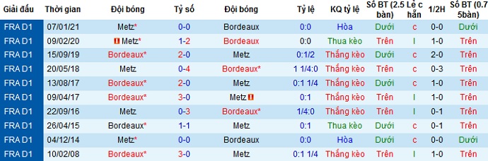 Không chỉ có được lợi thế sân nhà, Bordeaux vẫn đang chiếm ưu thế trong các lần đối đầu giữa hai đội khi ở 10 lần gần nhất Bordeaux thắng tới 7, chỉ để hòa 3 và không thua trận nào. Thế nhưng hiện tại Metz đang có thành tích du đấu rất tốt, cộng với việc chủ nhà sa sút nên chọn cửa dưới ở trận này có lẽ lại hợp lý.