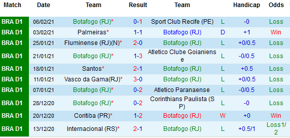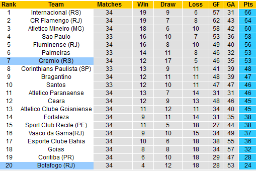 Chặng đường còn lại ở mùa giải năm nay với Botafogo chính thức chỉ còn mang ý nghĩa thủ tục nên giới mộ điệu có quá ít lý do để dành sự tin tưởng. Hơn nữa, đội chủ nhà đã thể hiện hình ảnh thực sự bết bát ở thời điểm hiện tại khi chỉ có duy nhất 1 điểm ở 8 vòng vừa qua