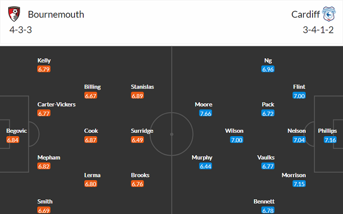 Đội hình dự kiến Bournemouth vs Cardiff