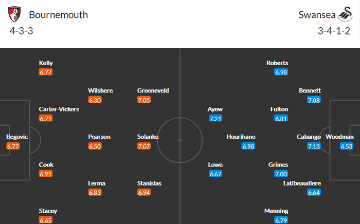 Phong độ và thống kê đối đầu Bournemouth - Swansea