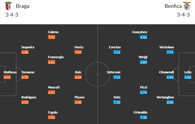Đội hình dự kiến Braga vs Benfica