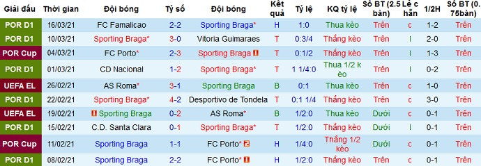 Sau khi để thua và bị loại khỏi đấu trường Europa League mùa này bởi AS Roma, Sporrting Braga quay trở về giải quốc nội và cũng có được 3 trận thắng, 1 trận hòa trong các trận đấu gần đây. Trên sân nhà thành tích của đội bóng tại giải quốc nội còn ấn tượng hơn khi bất bại ở cả 10 trận gần nhất, trong đó chỉ đề hòa 1 lần duy nhất với FC Porto, thắng cả 9 trận còn lại.