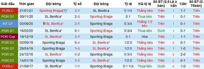 Đây có thể một phần lý do là bởi chuỗi toàn thắng của Benfica vừa qua. Tuy nhiên ngay cả trong 2 lần đối đầu gần nhất Sporrting Braga mới là đội giành chiến thắng. Thế nên chọn cửa dưới ở trận đấu này là hoàn toàn có cơ sở, chưa kể đến việc Sporrting Braga còn đang ra sức để bám đuổi đội nhì bảng FC Porto.