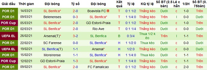 + Thống kê 10 trận gần nhất của Benfica